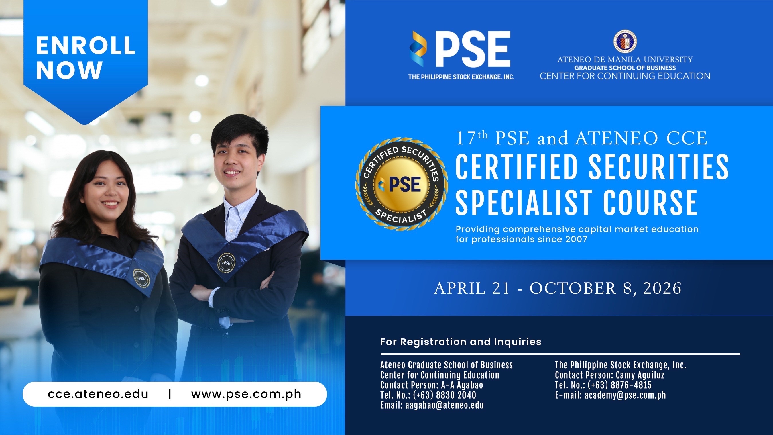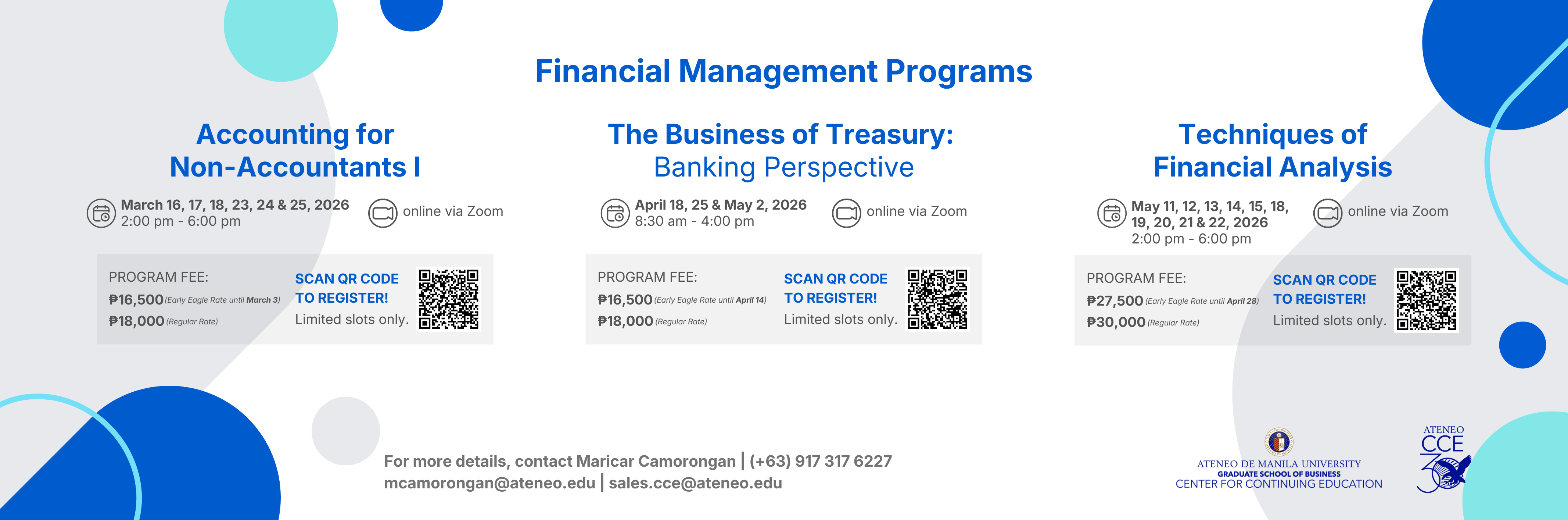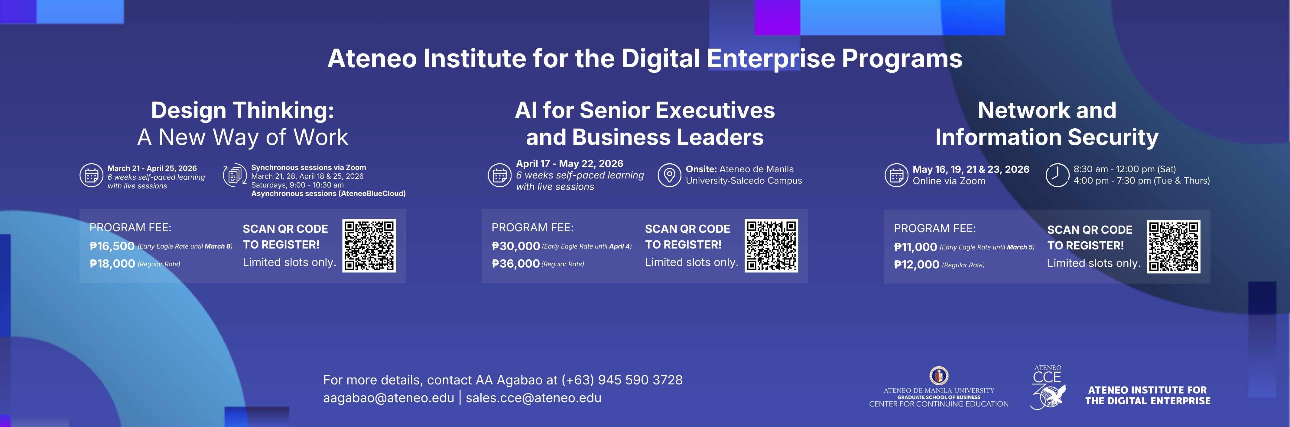The Ateneo Graduate School of Business - Center for Continuing Education (AGSB-CCE) was established to complement the existing Ateneo-BAP Institute of Banking, a consortium between the Ateneo de Ma... Read More